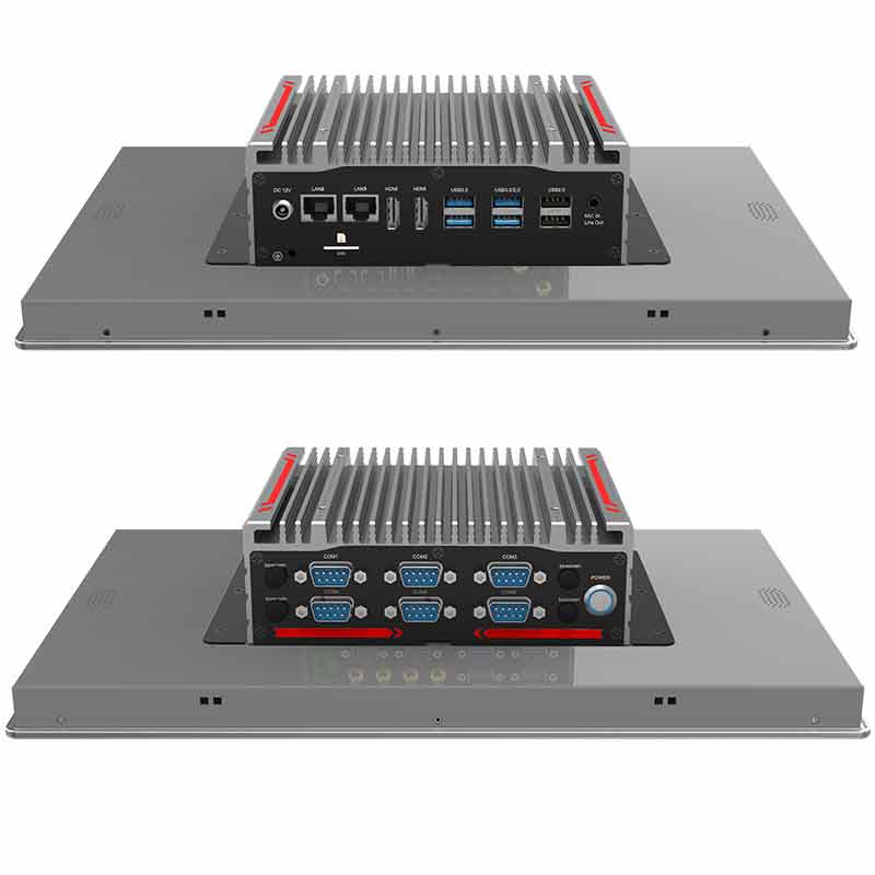 接口豐富:2*HDMI,2*LAN(Intel I225),6*COM,3*USB3.0,3*USB2.0,1*SIM槽,1*2.5寸硬盤位,1*音頻Line-Out+MIC二合一(OMTP國家標準),1*M.2(Key-M,2280,PCIE x2 NVME SDD),1*M.2(Key-B,3052,USB3.0+USB2.0支持4G、5G模塊),1*MPCIE(全高,PCIE+USB2.0,支持WIFI+BT/網卡),2*天線孔(WiFi與4G二選一)